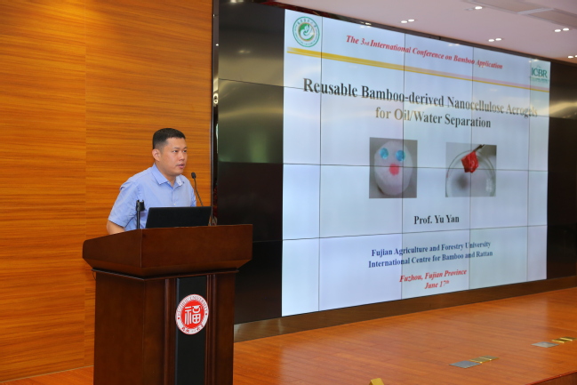 余雁的研究主要以木材、竹材為對象,揭示影響木竹材料性能的關鍵因子,開發相應的高值化利用技術,并致力于實現商業化應用。“木材、竹材制品一直是生活的必需品,具有很多優點,比如具有吸引人的外觀、綠色環保、可持續等。但也有明顯的缺點,比如耐候性不好,對光照、冷熱、水分、細菌等造成的綜合破壞耐受能力較差。”為了克服這些缺點,余雁帶領團隊長期聚焦木竹材功能化研究。“木竹材的功能化就是針對實體木材和竹材,用物理、化學的方法對這些材料進行功能改良,克服它的缺陷,拓寬其應用領域并延長使用壽命,從而減少碳的排放。”余雁帶領團隊在國內最早開展了木竹材糠醇改性技術研究,研發成功具有自主知識產權的新型催化劑體系,完成了產業化中試。其研發的糠醇樹脂改性技術讓木竹材制品的生物耐久性和使用壽命獲得了顯著提升。此外,他領導的團隊在國內最早開展了竹材表面無機納米功能化的應用基礎研究,使竹材在完保持天然色澤和紋理的同時,具有超疏水、強抗紫外及抗菌性等特性,開創了國內木竹材料表面納米功能化研究的新領域。