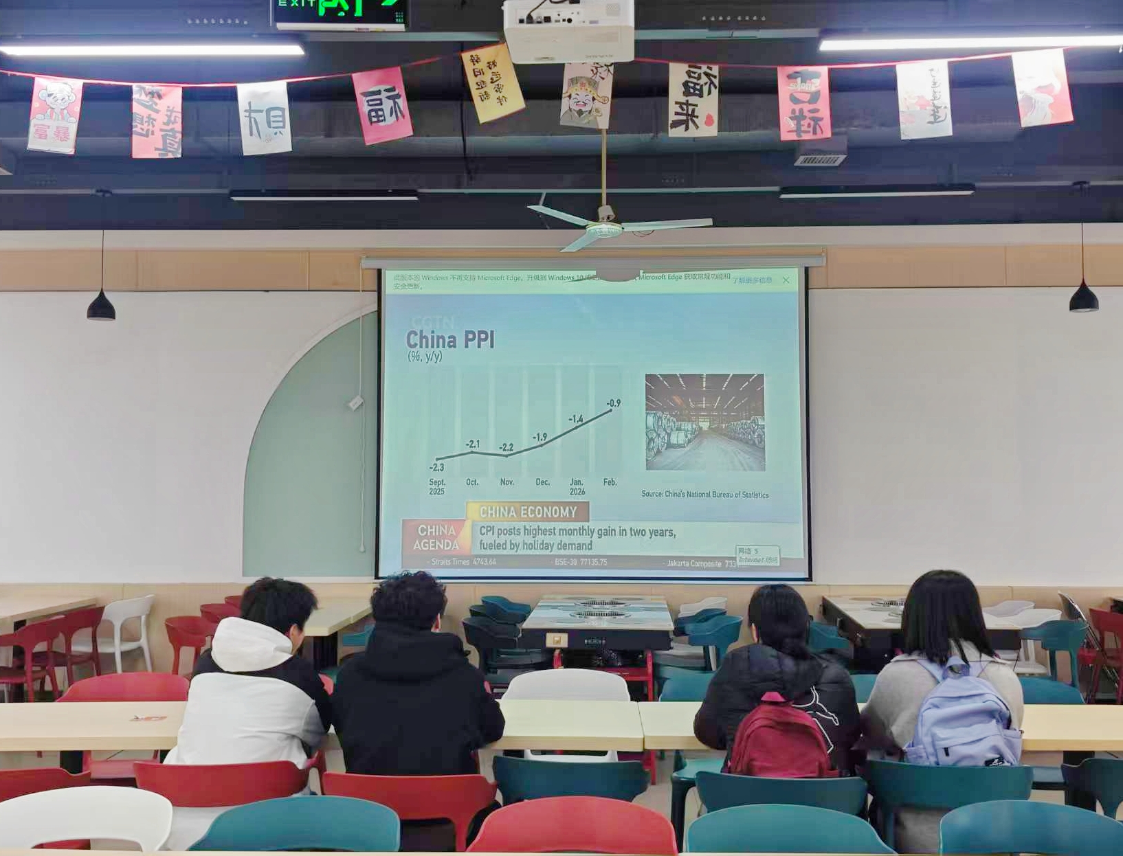 如果說(shuō)全國(guó)第九的排名是食堂硬件實(shí)力與味蕾體驗(yàn)的硬核證明,那么食堂英語(yǔ)角的打造,更是學(xué)校深耕文化育人、拓展育人場(chǎng)景的匠心巧思。學(xué)校依托食堂就餐區(qū)域,安裝高清電視與投影設(shè)備,巧用學(xué)生碎片化就餐時(shí)間,搭建沉浸式英語(yǔ)學(xué)習(xí)空間。食堂英語(yǔ)角以“規(guī)范嚴(yán)謹(jǐn)、實(shí)用有趣、寓教于樂(lè)”為原則,構(gòu)建三大特色內(nèi)容板塊:放送CGTN國(guó)際新聞,讓學(xué)生緊跟時(shí)事、放眼世界;精選National Geographic、Discovery、BBC Earth等優(yōu)質(zhì)科教紀(jì)錄片,拓寬知識(shí)視野;融入留學(xué)生訪(fǎng)談、英文學(xué)術(shù)講座、經(jīng)典影視片段等校本特色內(nèi)容,讓英語(yǔ)學(xué)習(xí)更具針對(duì)性與親切感,讓就餐時(shí)光變得有聲有色、學(xué)有所獲。