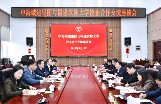3月16日下午,福建農(nóng)林大學(xué)與中海城建集團(tuán)在福州倉(cāng)山校區(qū)明德樓武夷廳舉行校企合作交流座談會(huì),并簽署共建中海海洋產(chǎn)業(yè)創(chuàng)新研究院合作協(xié)議。校長(zhǎng)蘭思仁出席座談會(huì),與中海城建集團(tuán)總裁陳煥智一行就深化產(chǎn)學(xué)研合作進(jìn)行深入交流。