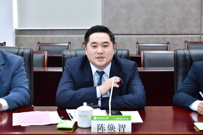 蘭思仁代表學(xué)校對(duì)陳煥智一行到訪表示歡迎,簡(jiǎn)要介紹了學(xué)校的基本情況。他表示,經(jīng)過(guò)前期充分溝通,雙方在校企合作方向上高度契合,此次合作既是優(yōu)勢(shì)資源的互補(bǔ)融合,更是推動(dòng)共贏發(fā)展、服務(wù)國(guó)家戰(zhàn)略的重要契機(jī)。為加快合作項(xiàng)目落地見(jiàn)效,蘭思仁提出四點(diǎn)要求:一是明確“推進(jìn)鄉(xiāng)村振興,服務(wù)現(xiàn)代農(nóng)業(yè)強(qiáng)國(guó)”這一主線,充分發(fā)揮學(xué)校在服務(wù)鄉(xiāng)村振興和農(nóng)業(yè)現(xiàn)代化建設(shè)中的使命擔(dān)當(dāng),依托新成立的研究院推動(dòng)多學(xué)科交叉融合,培養(yǎng)更多高素質(zhì)農(nóng)林人才,把更多好技術(shù)送到田間地頭;二是搭建一個(gè)平臺(tái),即共建中海海洋產(chǎn)業(yè)創(chuàng)新研究院,將其作為服務(wù)主線的重要抓手;三是組建一批團(tuán)隊(duì),圍繞合作區(qū)域產(chǎn)業(yè)發(fā)展需求,在種質(zhì)資源、生態(tài)種植、精深加工、智能裝備、品牌營(yíng)銷(xiāo)等領(lǐng)域組建專(zhuān)家團(tuán)隊(duì),助力企業(yè)發(fā)展;四是策劃一批項(xiàng)目,組織科研團(tuán)隊(duì)開(kāi)展技術(shù)攻關(guān)、產(chǎn)品研發(fā)和工藝優(yōu)化,加快科技成果轉(zhuǎn)移轉(zhuǎn)化。他表示,希望雙方共同努力,將研究院打造成為產(chǎn)學(xué)研深度融合的標(biāo)桿,為推動(dòng)區(qū)域經(jīng)濟(jì)高質(zhì)量發(fā)展和鄉(xiāng)村全面振興注入強(qiáng)勁科技動(dòng)能。