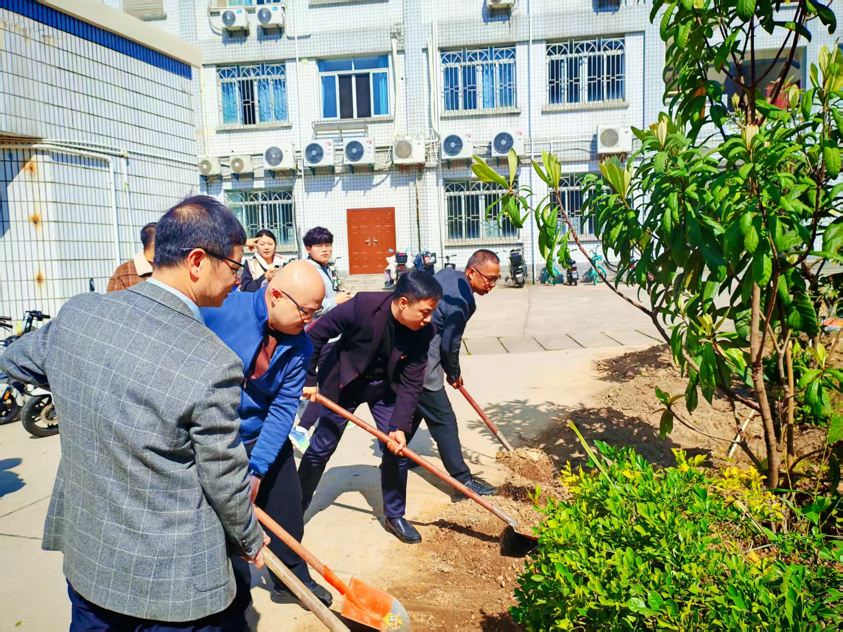 植樹現場暖意融融,黨員同志和師生代表分工協作、配合默契。揮鍬鏟土、扶苗填坑、提水澆灌……大家一絲不茍、步步到位,每道工序都認真細致,現場氣氛熱烈而有序。經過大家的共同努力,一株株新栽的桃樹苗穩穩扎根沃土,在春風中挺立吐綠,為春日的校園增添了盎然生機。