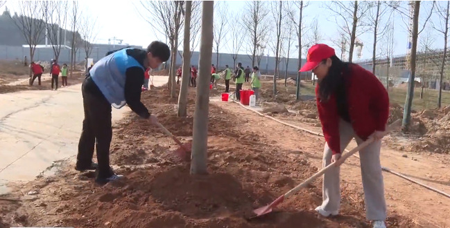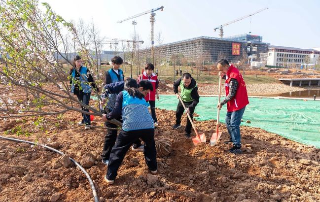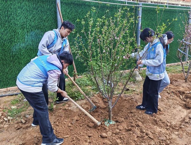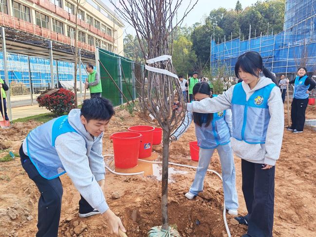 植樹點位于南平校區二期新建項目問渠圖書館、博學樓、篤行樓周圍,這一區域于不久前全面封頂,環境優美、配套完善。在湖邊路旁、樓前屋后,大家揮鍬鏟土、扶苗填坑、圍堰澆水,植樹現場氣氛熱烈,一派繁忙景象。一棵棵新栽苗木迎風挺立,為春日的校園增添了勃勃生機。