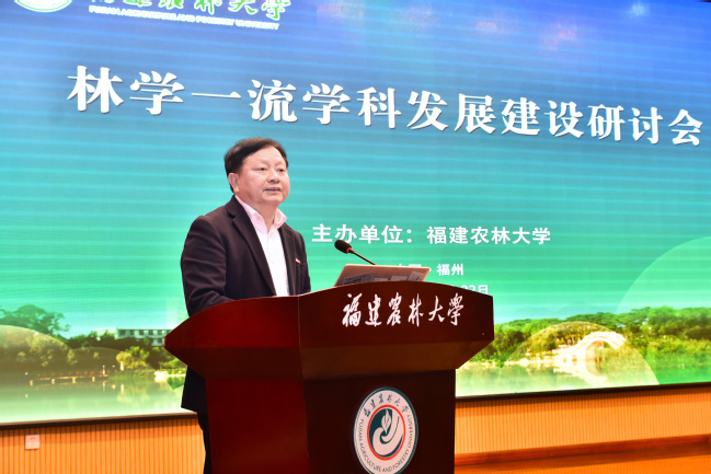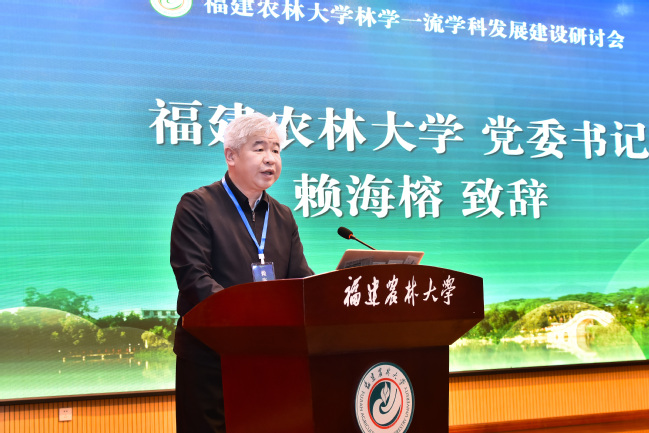 賴海榕在致辭中簡要介紹了近年來學校建設發展成效。他說到,在福建農林大學合并組建 25 周年之際,習近平總書記給我校全體師生回信,為學校發展指明了前進方向,注入了磅礴偉力。當前,學校正全力推進林學、植物保護兩個學科群建設,沖刺國家“雙一流”。福建是我國南方重點林區之一,是習近平生態文明思想的重要孕育地和先行區。我校林學學科堅持特色發展,構建起“1個主干學科+N個支撐學科”的多學科協同發展體系。林學學科群作為我校農林生物安全全國重點實驗室的重要支撐,緊密對接國家生態文明戰略需求,聚焦重大林業有害生物防控、林木基因資源保護與利用等關鍵領域,持續開展有組織科研攻關,研發出防控松材線蟲病等系列新技術,為守護綠水青山提供硬核科技支撐。林學學科群在杉木培育、水土流失治理、竹產業、菌草和蘭花等特色領域,形成一批具有引領性的“單項冠軍”,為保障我國林業生態安全做出了積極貢獻。他期待,院士、專家為林學學科把脈指向,在學科發展規劃、機制創新、人才引育、平臺建設和成果產出方面,給予全方位的精準指導;為我校辦學授業解惑,圍繞人才培養模式改革、高水平團隊建設、有組織科研攻關以及產學研深度融合等方面傳授寶貴經驗和成功做法;為共贏發展搭橋聚力,助推我校與國內外頂尖團隊建立更為緊密的聯系與合作,攜手共促學科邁上新臺階、實現新突破。