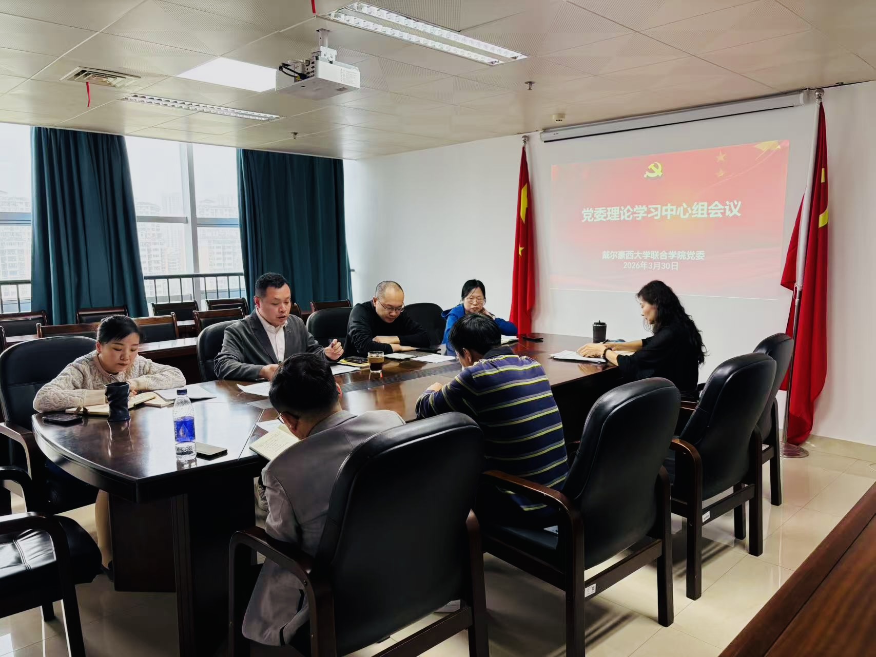 3月30日上午,戴爾豪西大學聯合學院黨委理論學習中心組召開專題學習會,集中學習研討《習近平總書記地方工作期間堅持正確政績觀生動實踐》,中心組成員參加會議,會議由學院副院長(主持工作)呂健主持。
