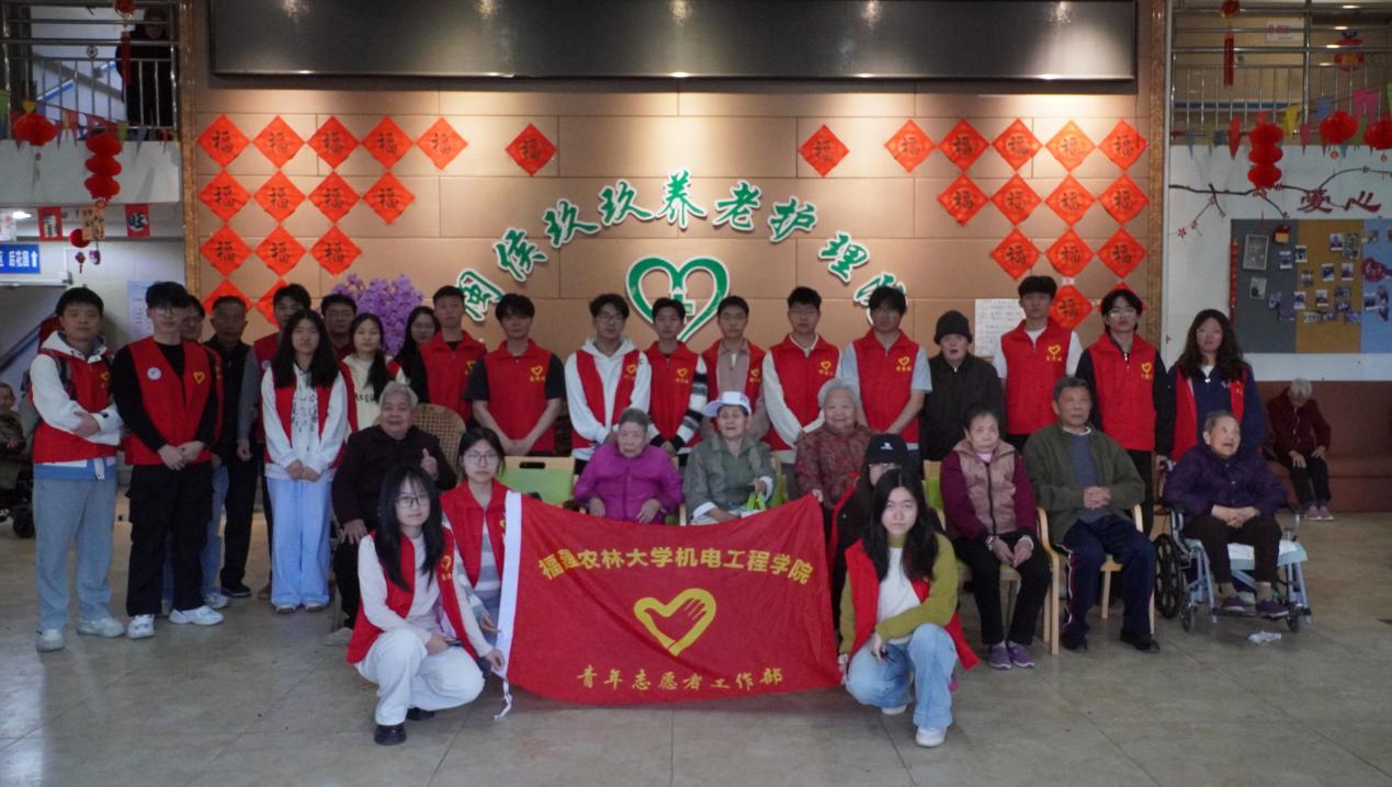 機電工程學院團委青年志愿者工作部與玖玖敬老院老人們合影