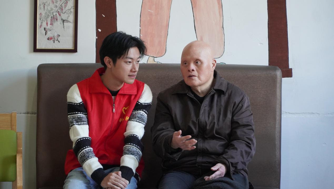 志愿者與老人談心交流